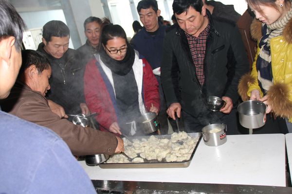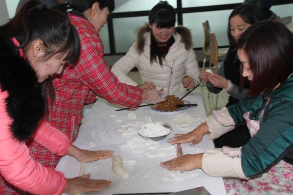 我公司領(lǐng)導(dǎo)組織各部門人員以及一線工人,弘揚毛主席“自己動手,豐衣足食”的作風(fēng),東起全體員工自己動手包餃子。在公司領(lǐng)導(dǎo)的組織下,大家開始有秩序的進(jìn)行準(zhǔn)備工作,系上圍裙,有的和面、有的搟皮、有的做餃子餡。大家分開兩撥,這邊和面,那邊飽餃子,氣氛很活躍。同事們以迅雷不及掩耳之勢完成了準(zhǔn)備工作,準(zhǔn)備工作完成后,進(jìn)入包餃子階段,雖然很多同事不怎么會包餃子,但是在別人的幫助下很快進(jìn)入狀態(tài)。看著一個個新鮮出爐的餃子,同事們的表情非常精彩,相互調(diào)侃的的話也漸漸多起來,包餃子工程進(jìn)入***階段,氣氛一時異?;馃?,看著同事們一個個熱情洋溢的表情,一盤盤“奇形怪狀”的餃子真是羨煞旁人!